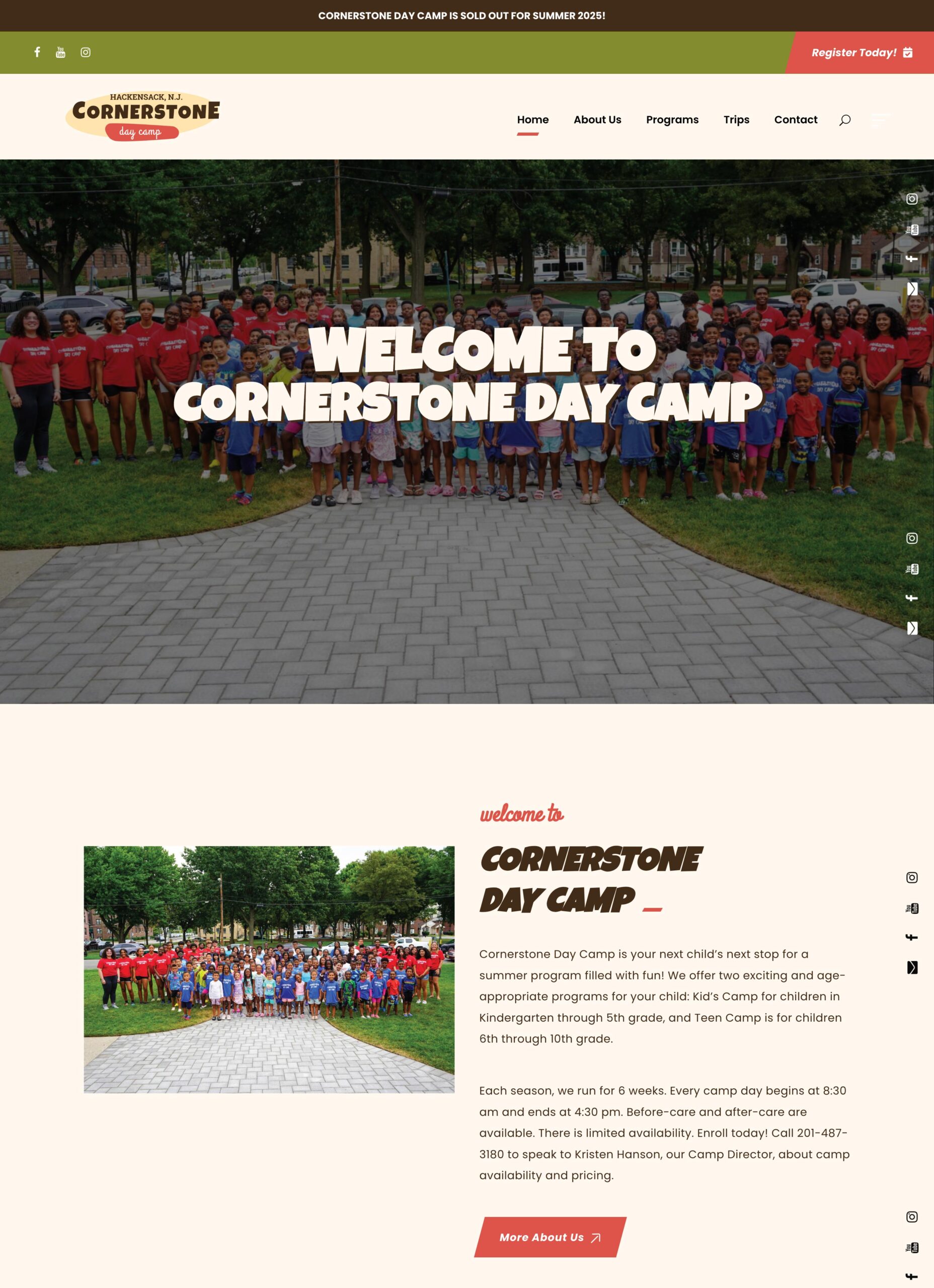 Following the website launch, Cornerstone Day Camp sold out for two consecutive years. The new site successfully boosted enrollment and provided a dynamic, user-friendly platform for families to learn about and register for camp.